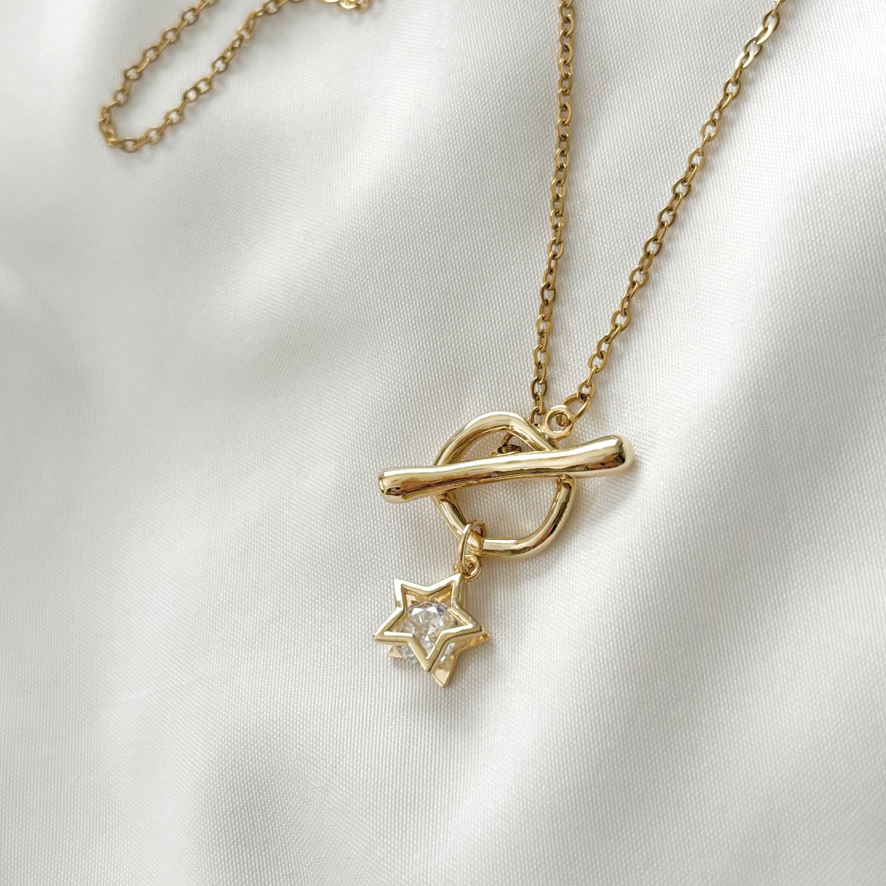 (ネックレス)つけっぱなしOK!サージカルステンレス 星 キュービックジルコニア ネックレス ゴールド マンテル ステンレス / スター 金属アレルギー対応 マンテルネックレス