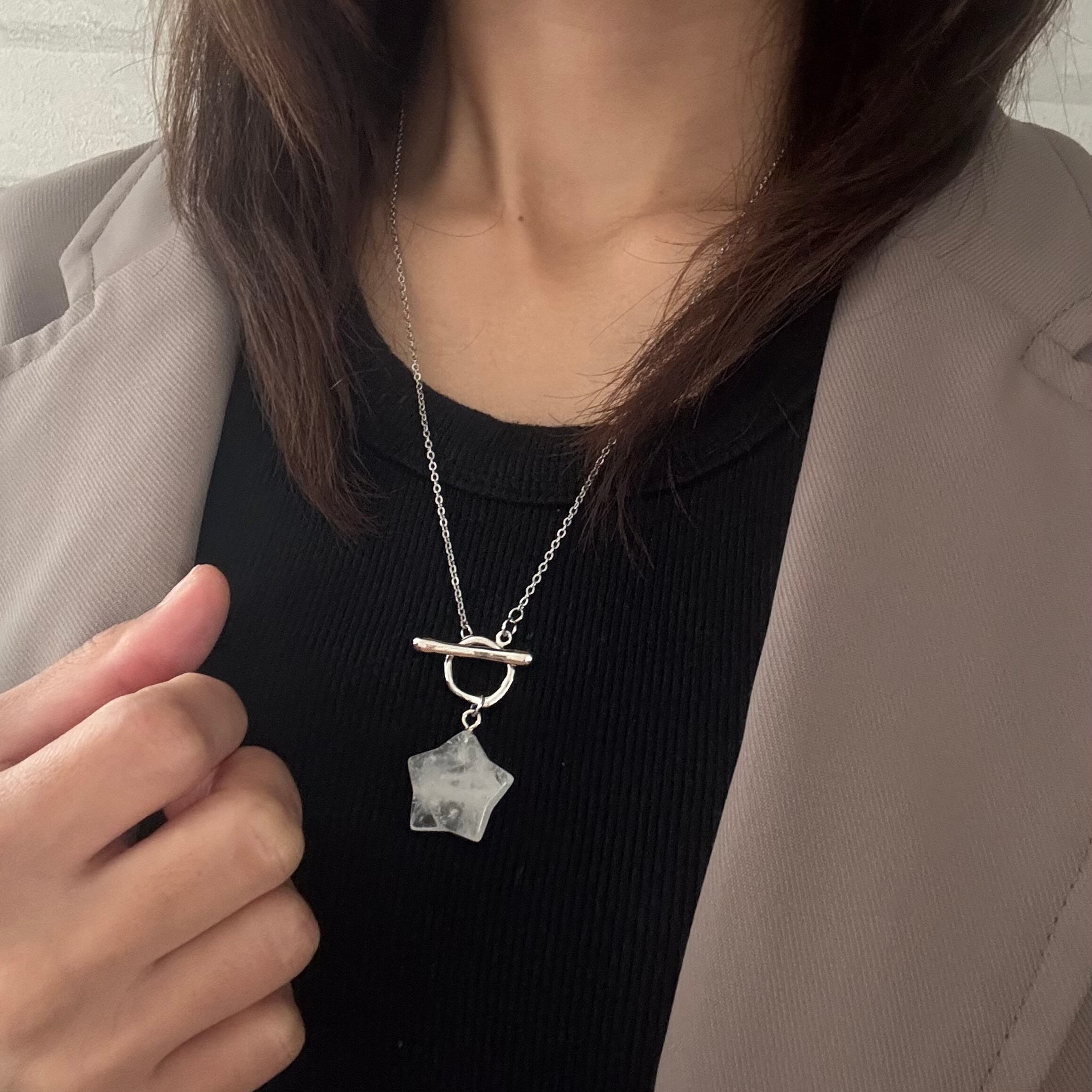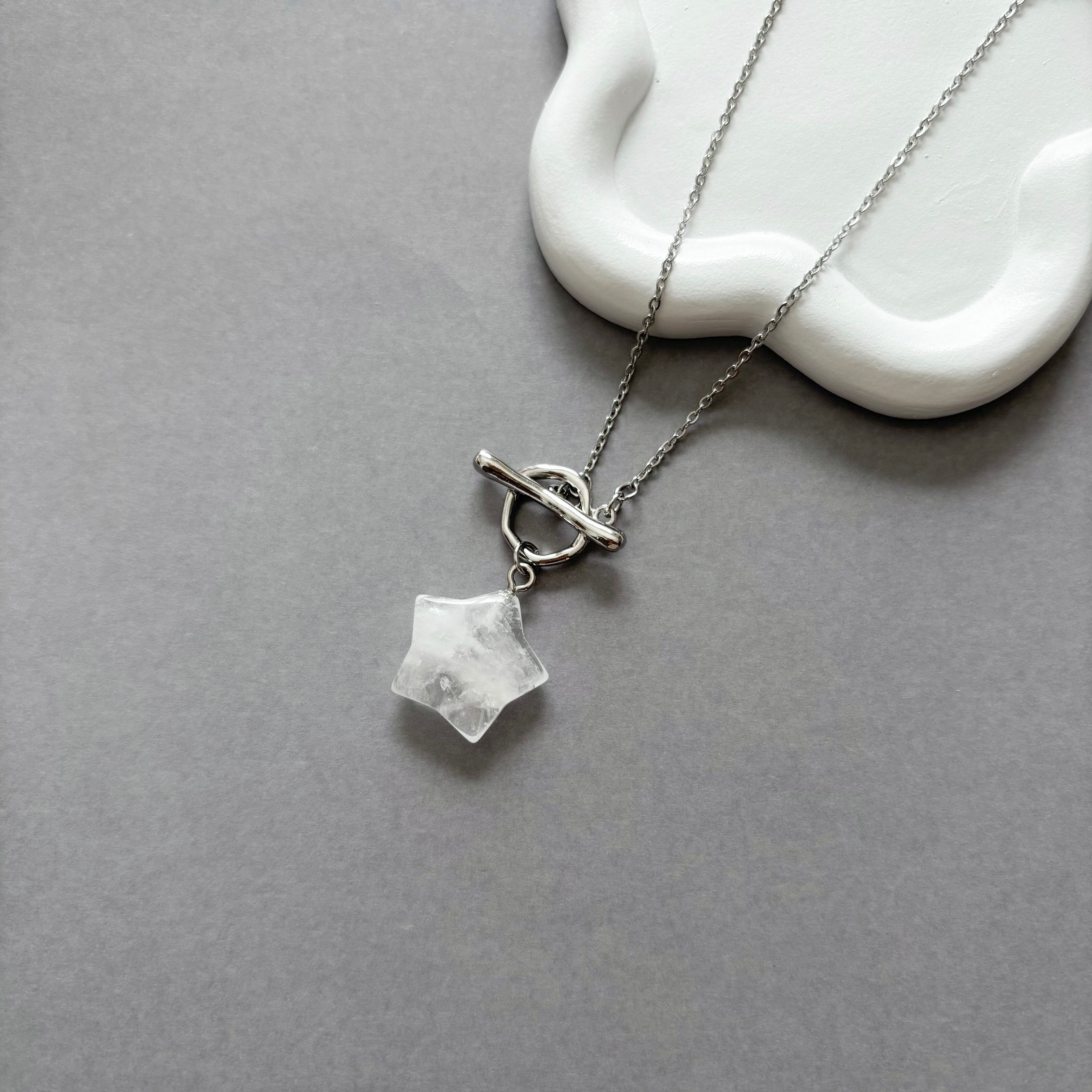 (ネックレス)つけっぱなしOK!"サージカルステンレス" 星 天然石 マンテルネックレス シルバー 水晶 クォーツ マンテル ステンレス ネックレス / スター 金属アレルギー対応