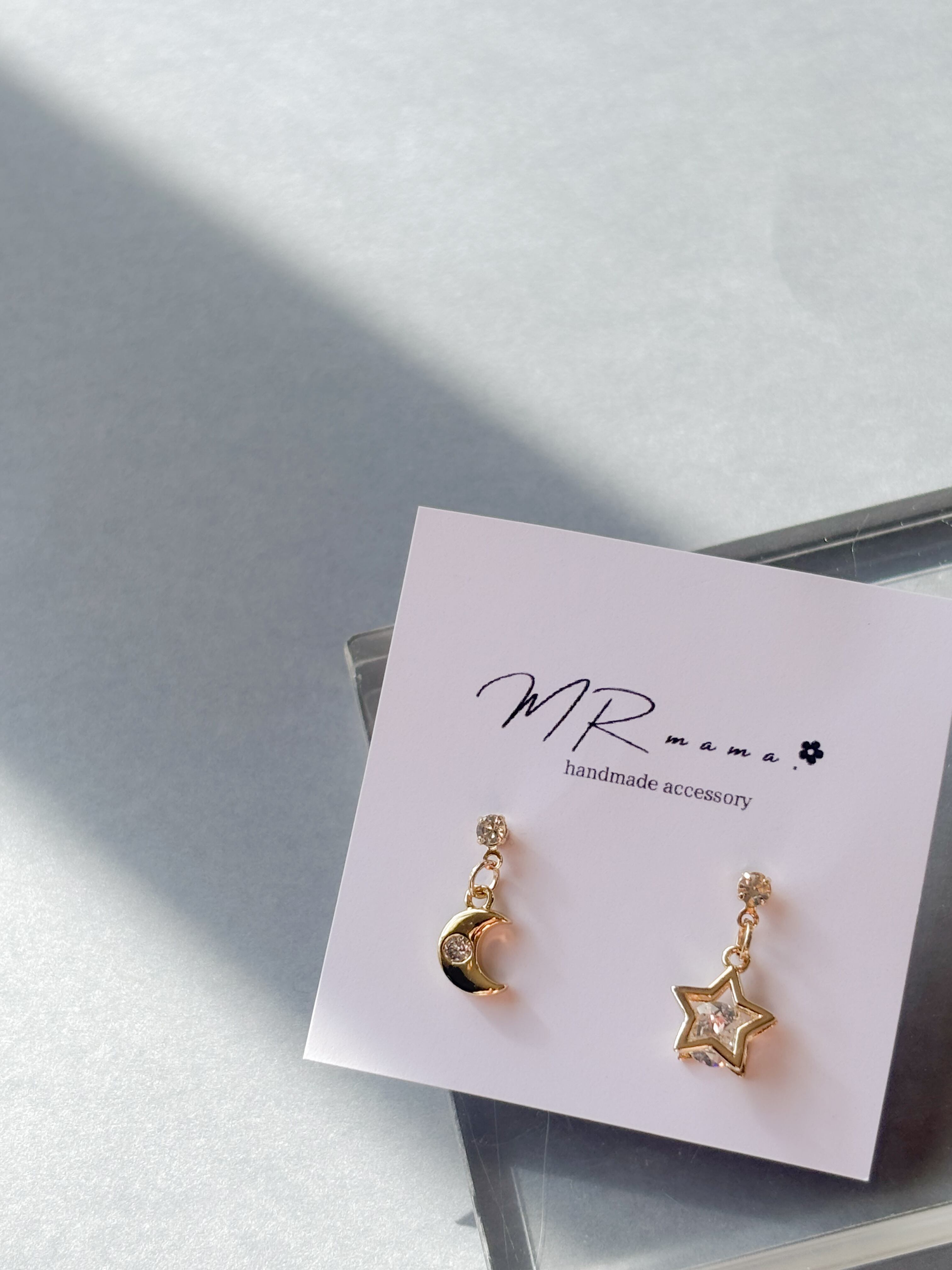月と星 ビジュー アシンメトリー チタンピアス / イヤリング