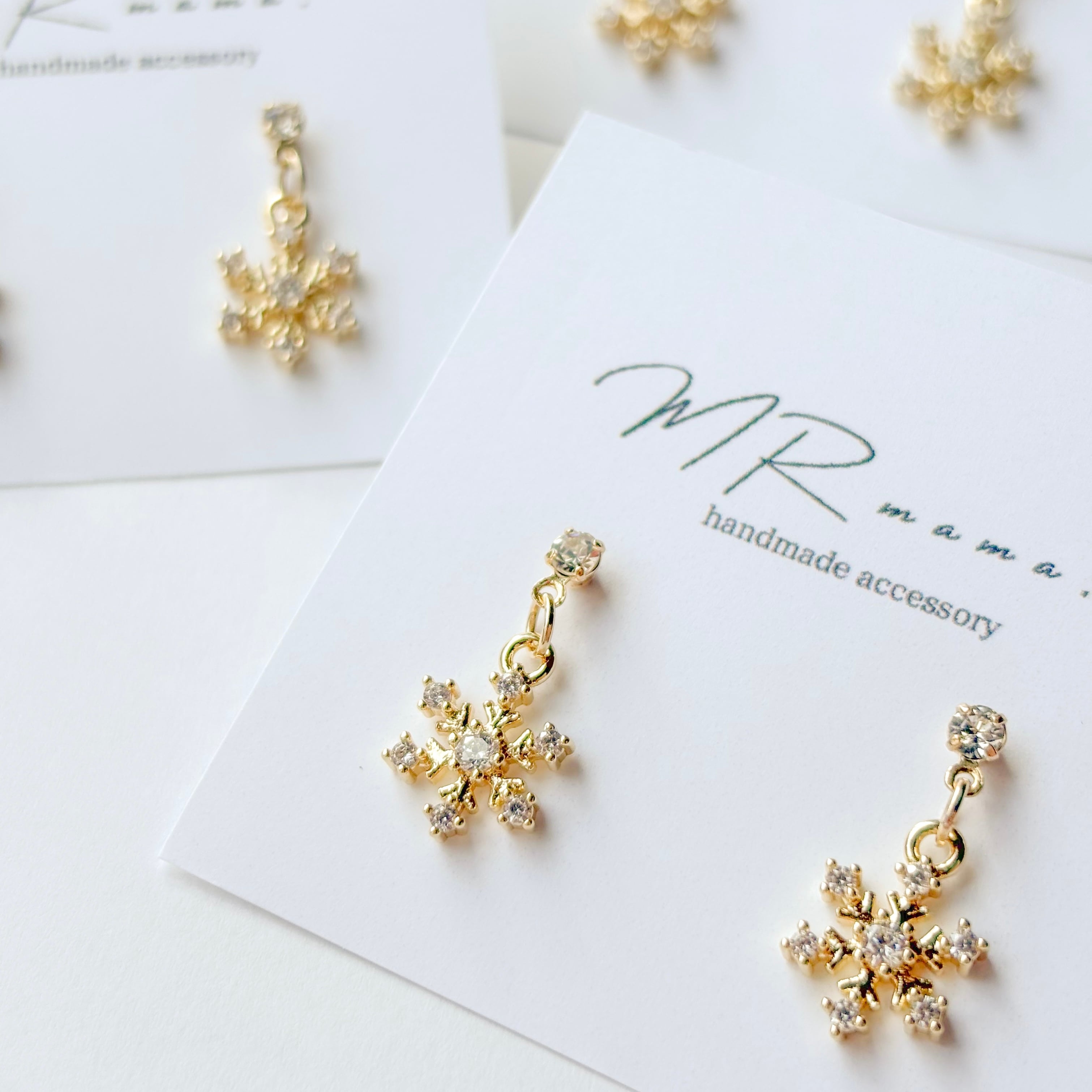 雪の結晶 ビジュー チタン クリスタル ジルコニア シンプル ピアス / イヤリング