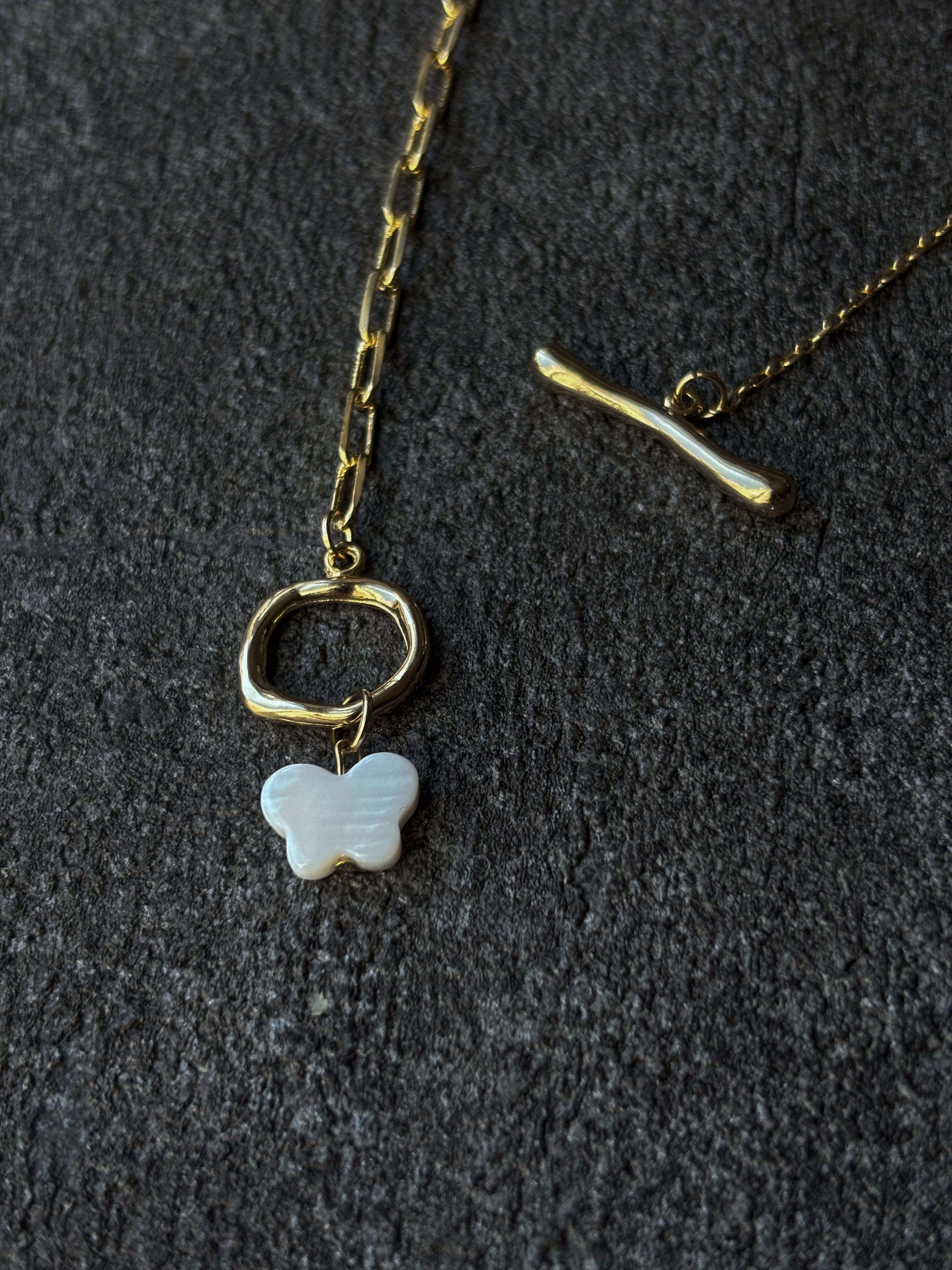 蝶パール ネックレス 蝶 バタフライ ホワイトシェル マンテルネックレス サージカルステンレス