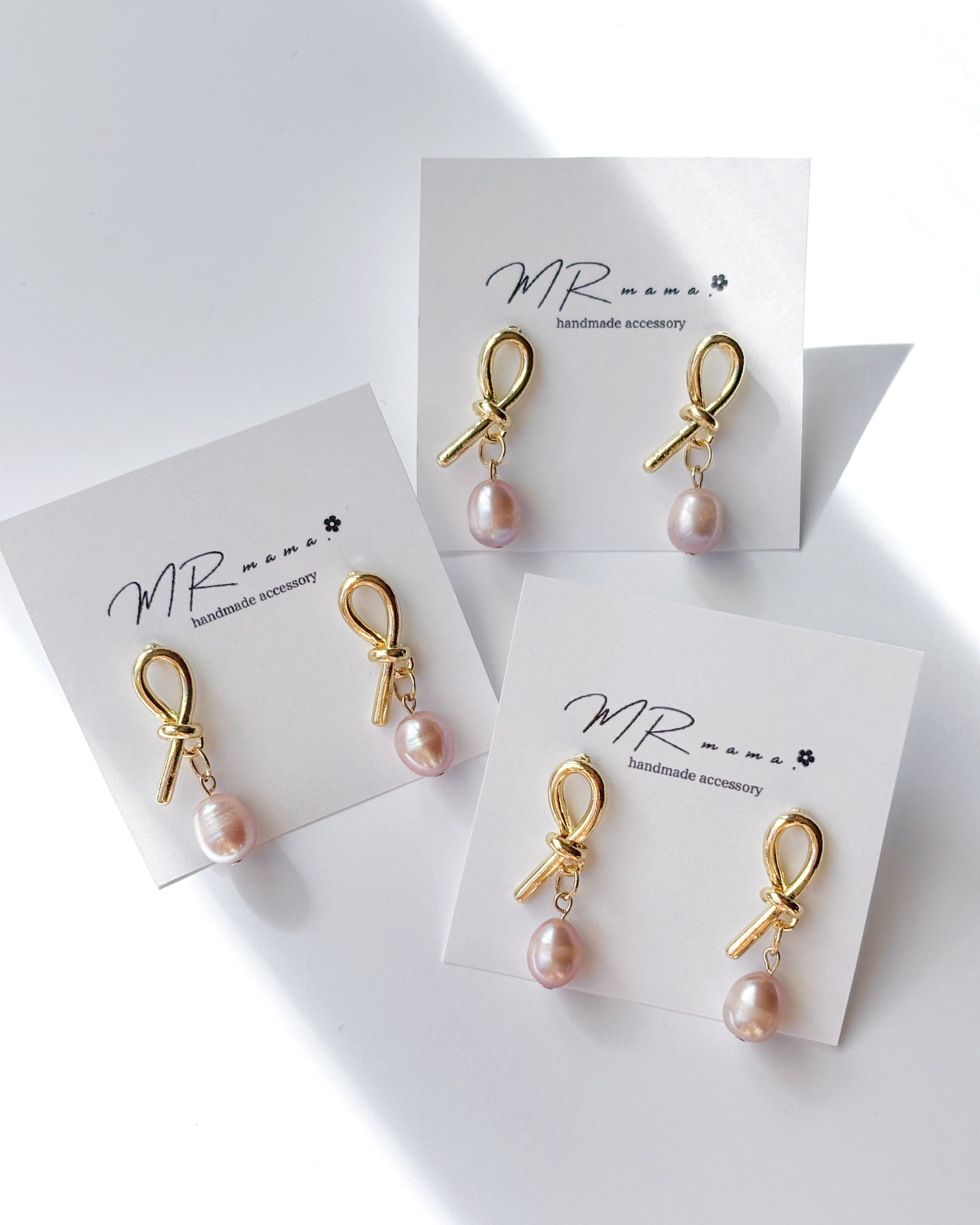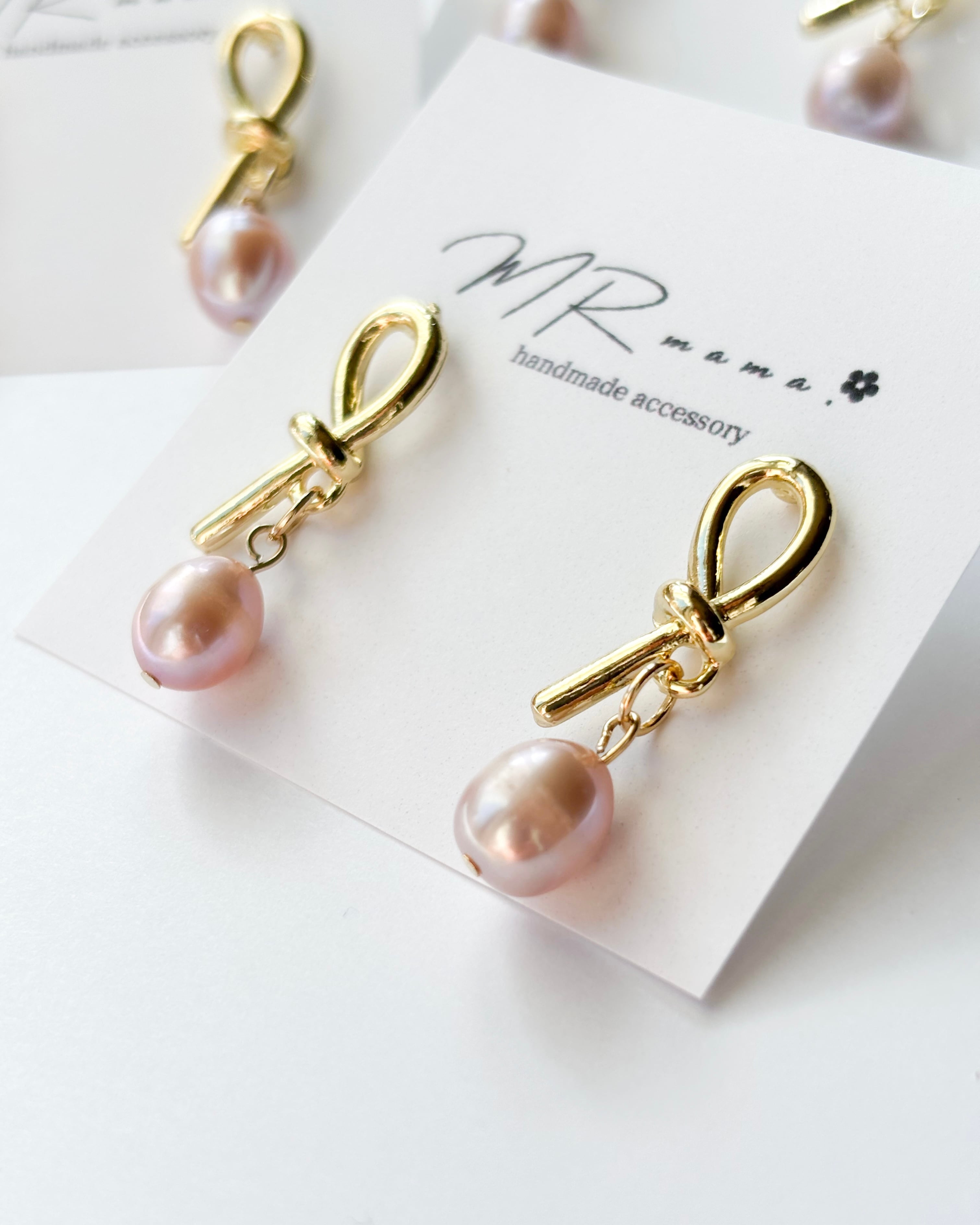 結び × 桜ピンク 淡水パール ドロップパール バロックパール ピンク ピアス / イヤリング . 卒業式 卒園式 入学式 入園式