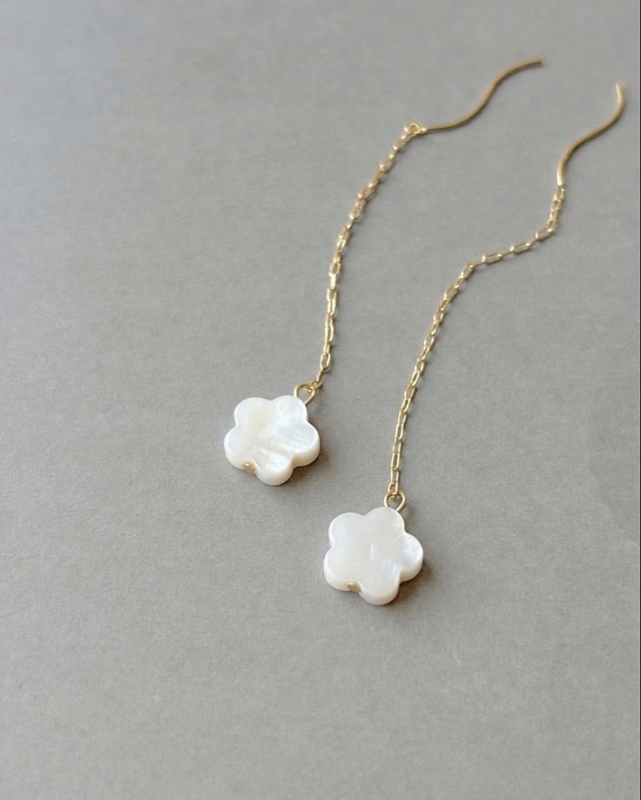 ホワイトシェル 花 ピアス 白蝶貝 アメリカンピアス チェーン フラワー 小ぶり シンプル 上品 ピアス 卒業式 入学式