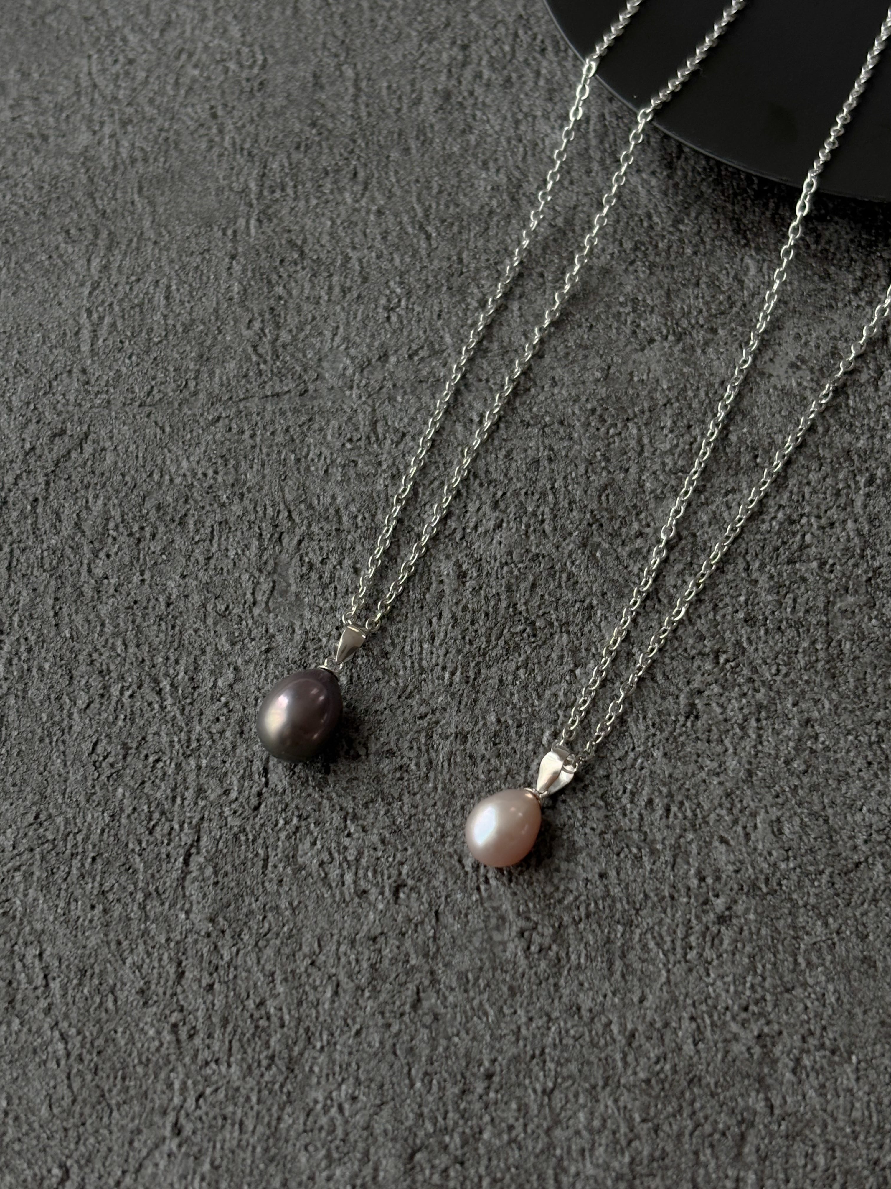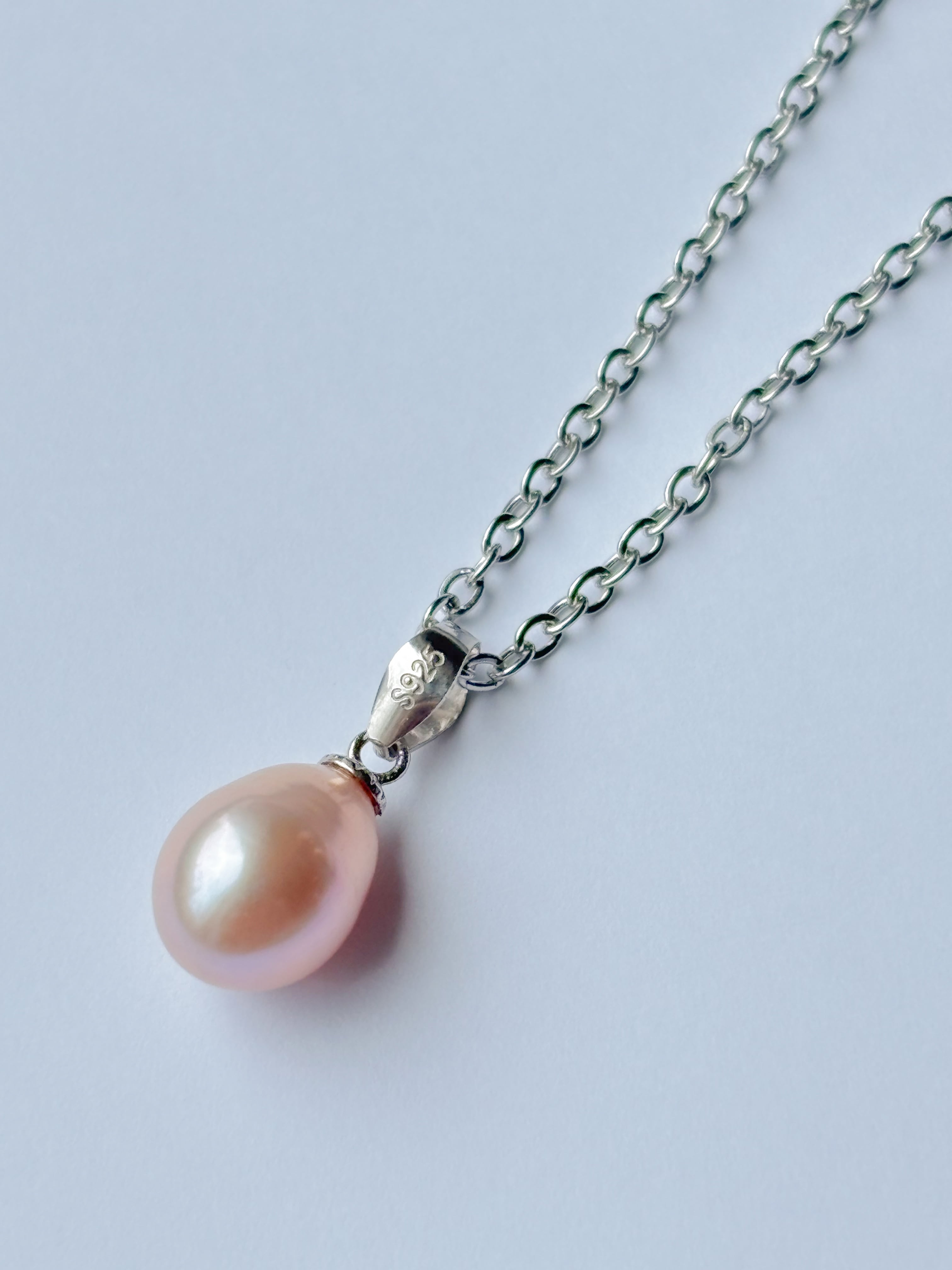 希少な 淡いライトピンク系の一粒淡水パールを合わせ