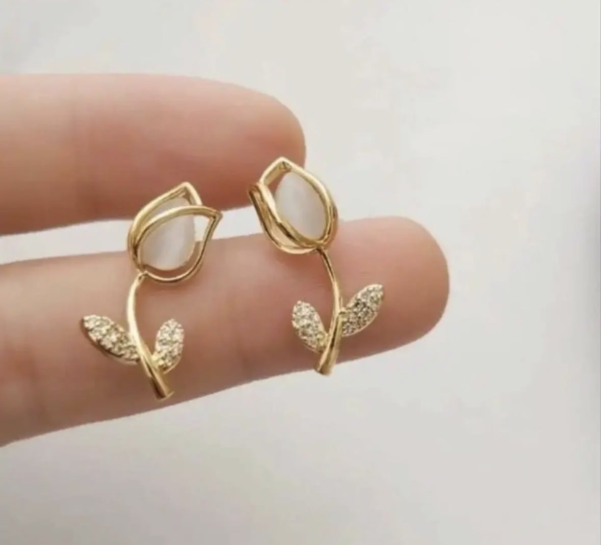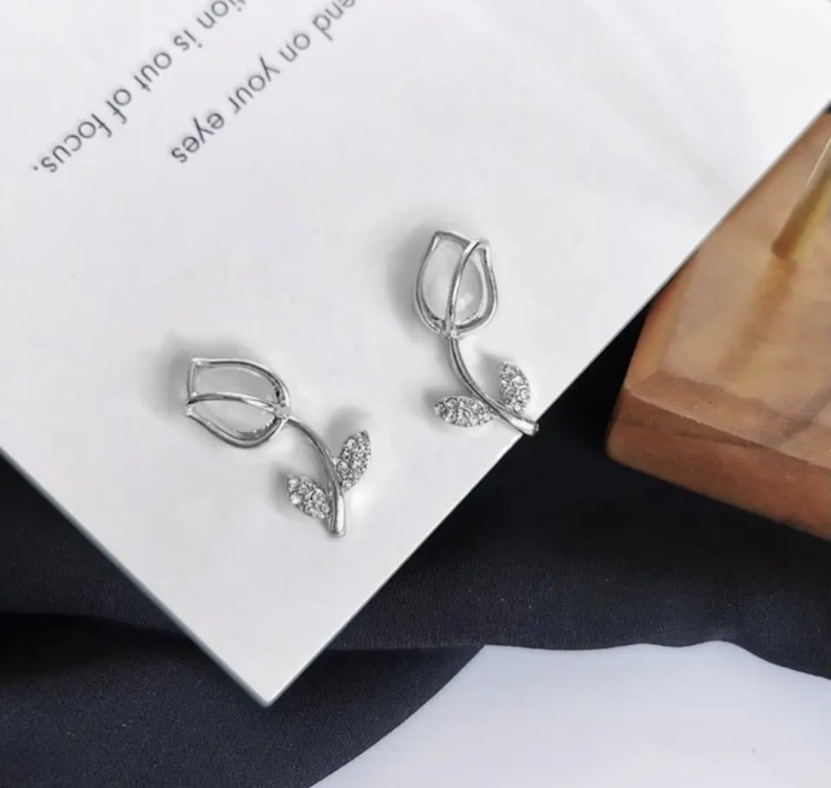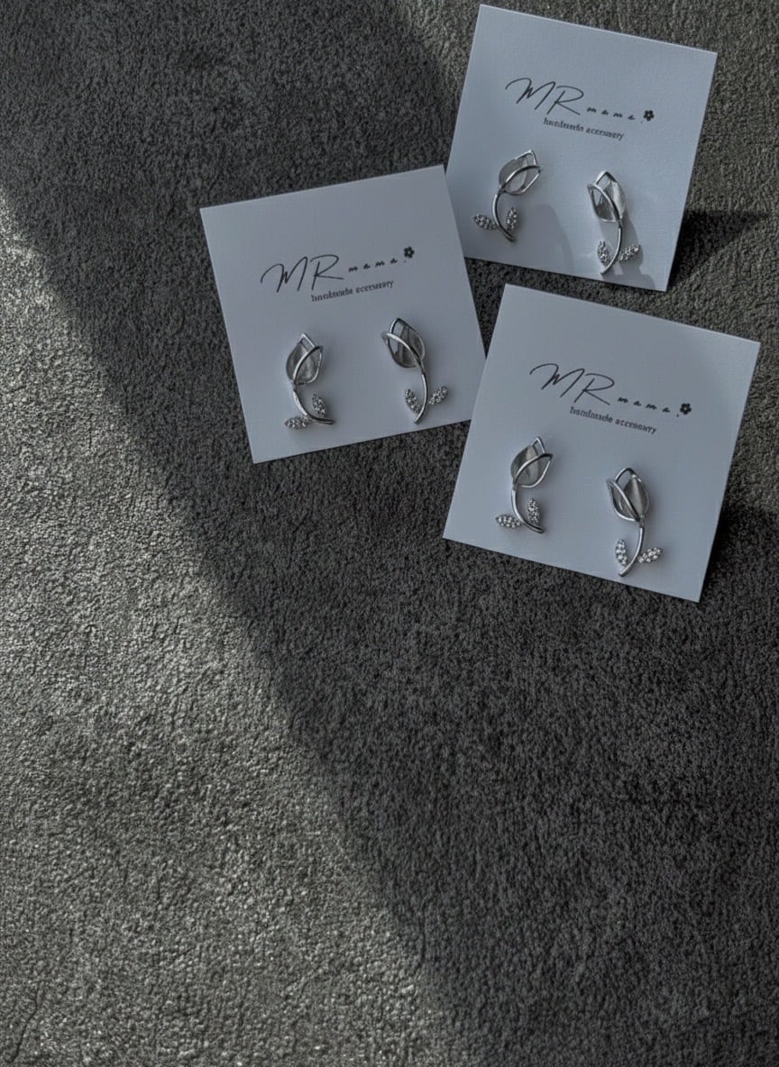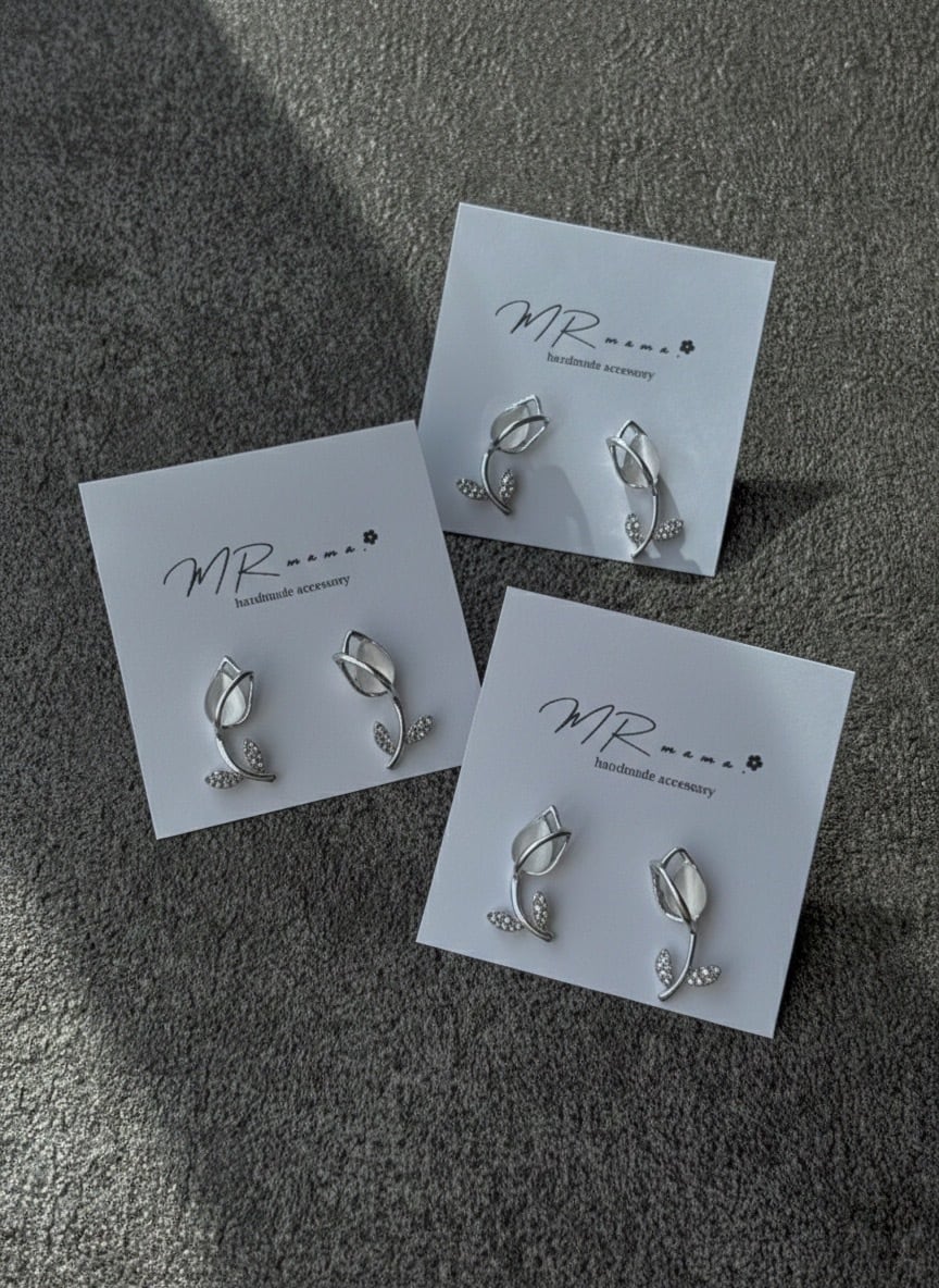 【再販予定】チューリップ ビジュー × パールキャッチ シルバー925 ピアス / イヤリング . 金属アレルギー対応 - シルバー -