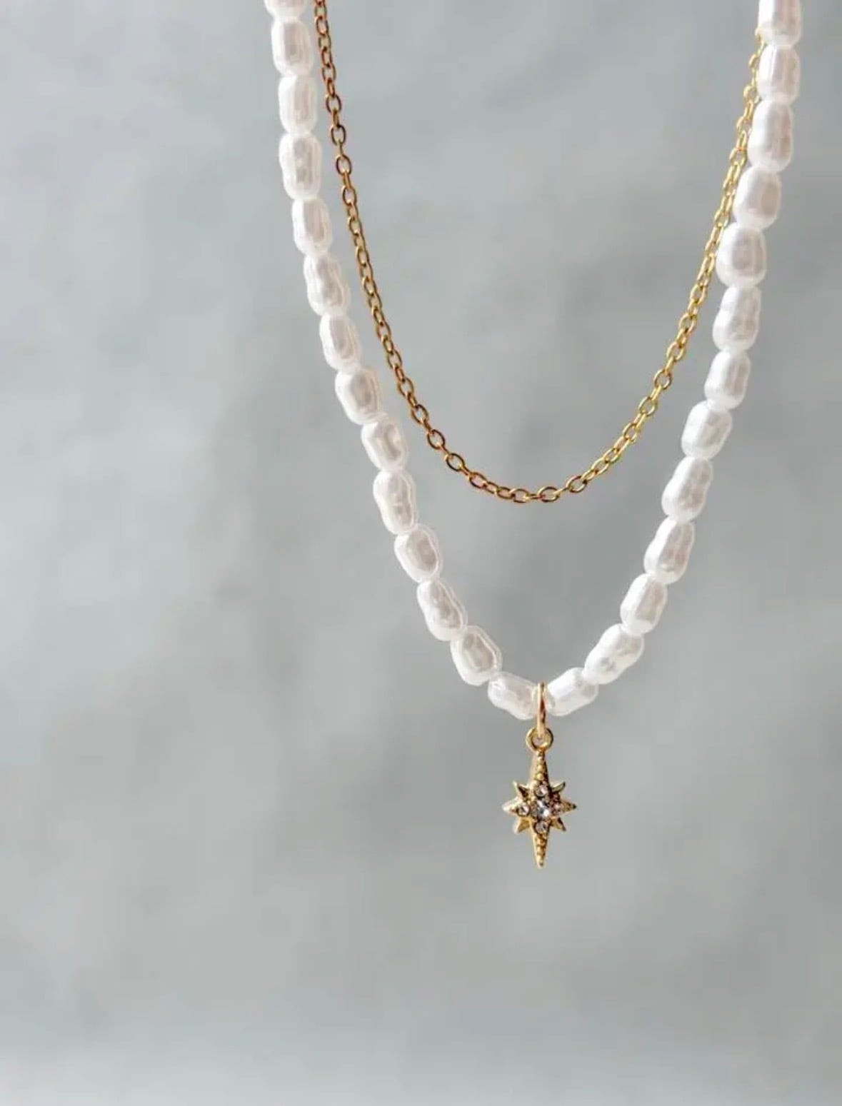 ・星ビジュー パール×チェーン ネックレス 2点セット