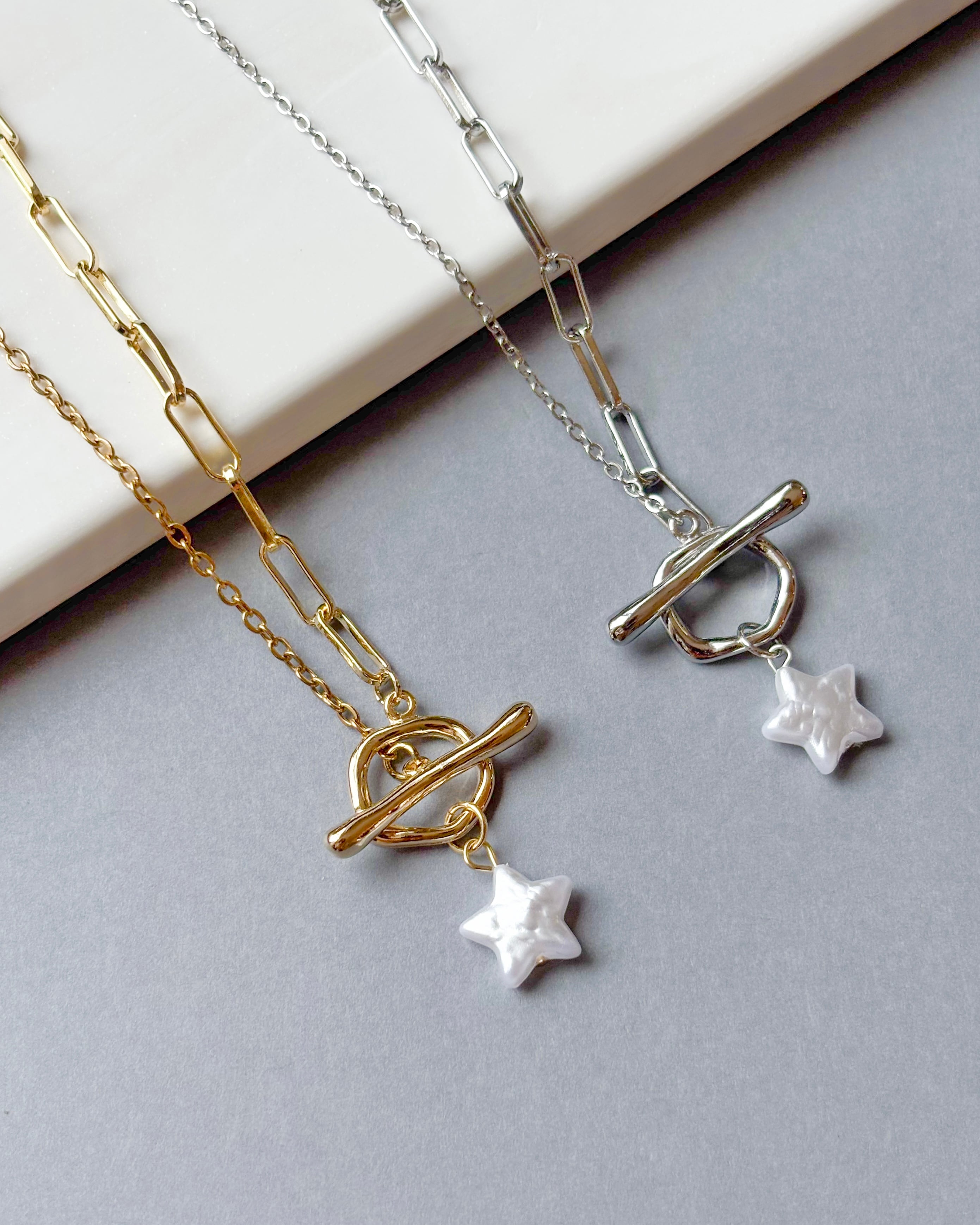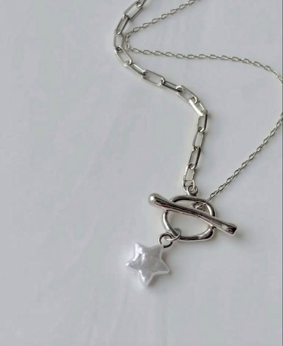 星パール ネックレス . 一粒パール ゴールド マンテルネックレス バロックパール ❮ シルバー ❯