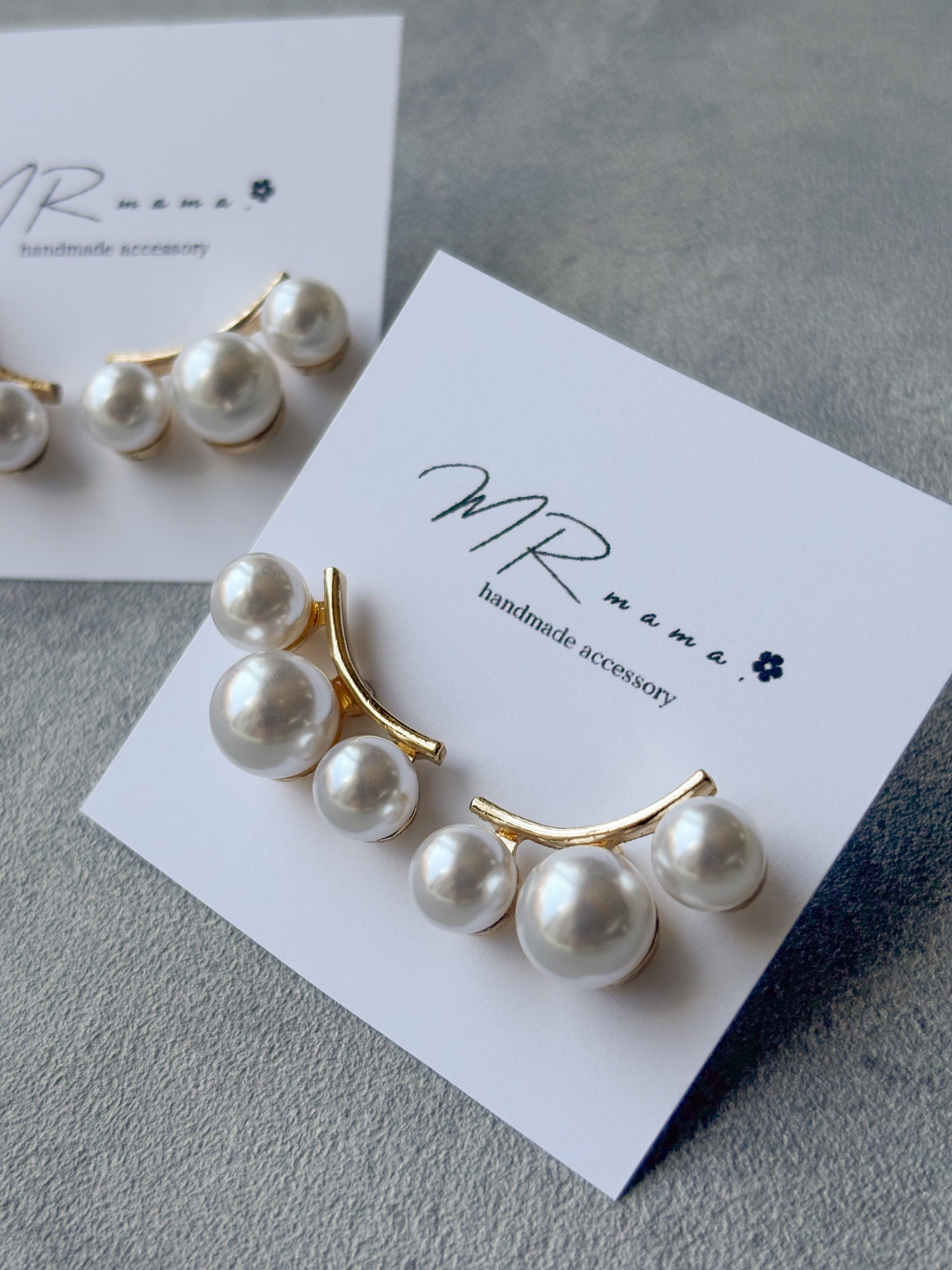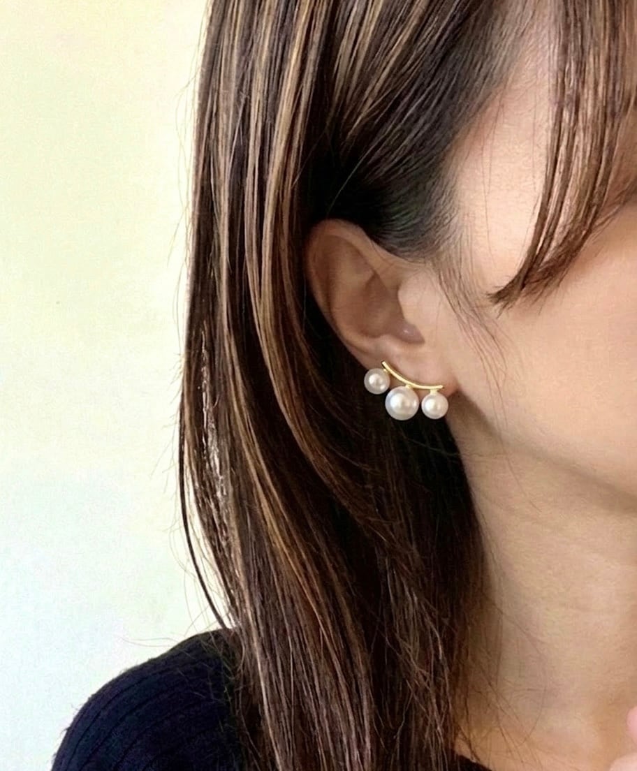 三連 パール シルバー925 ピアス / イヤリング . 金属アレルギー対応 まつげパール 大ぶり ✳︎ 卒園式 卒業式 入園式 入学式 結婚式 フォーマル