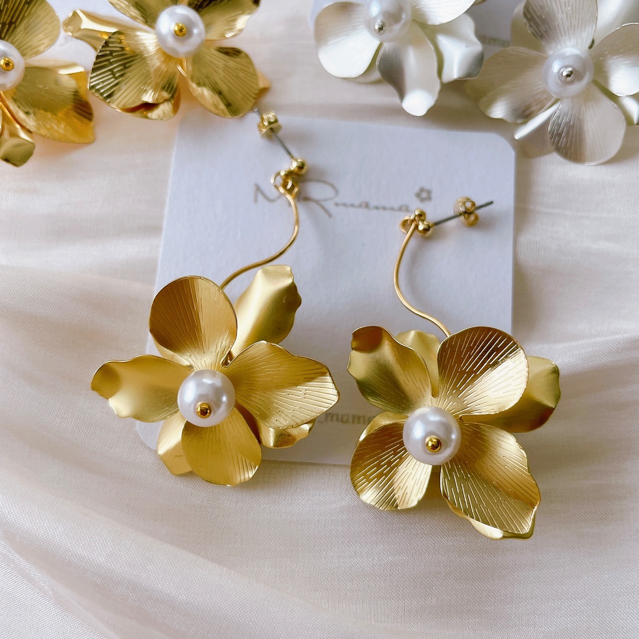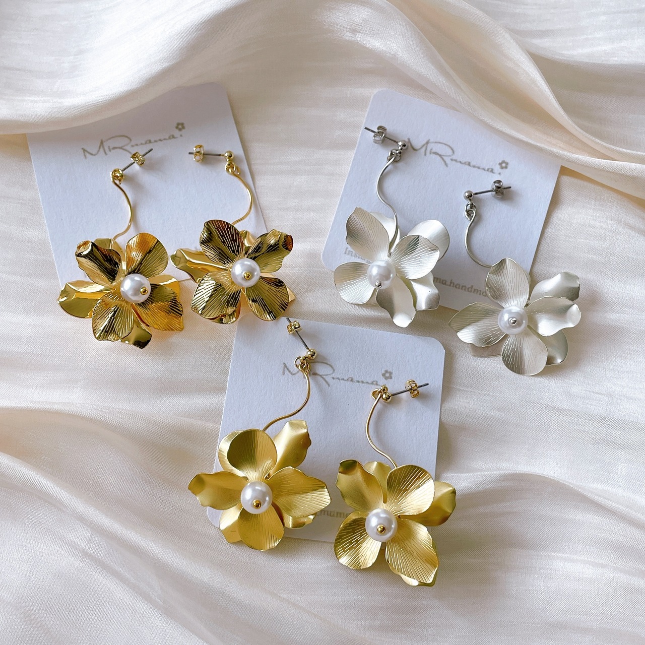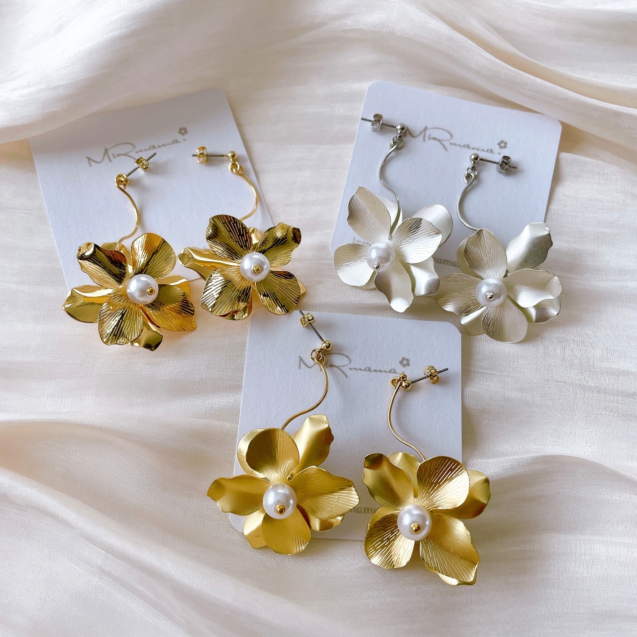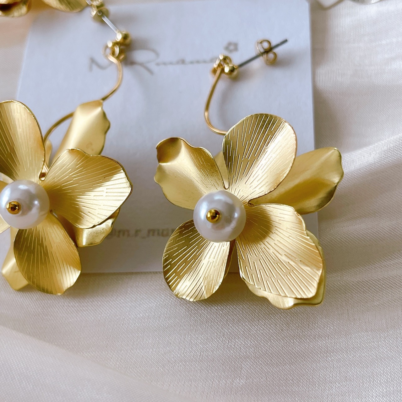 ( ピアス/イヤリング) メタルフラワー 揺れる ピアス マットゴールド ブライダル ウェディング 客 結婚式