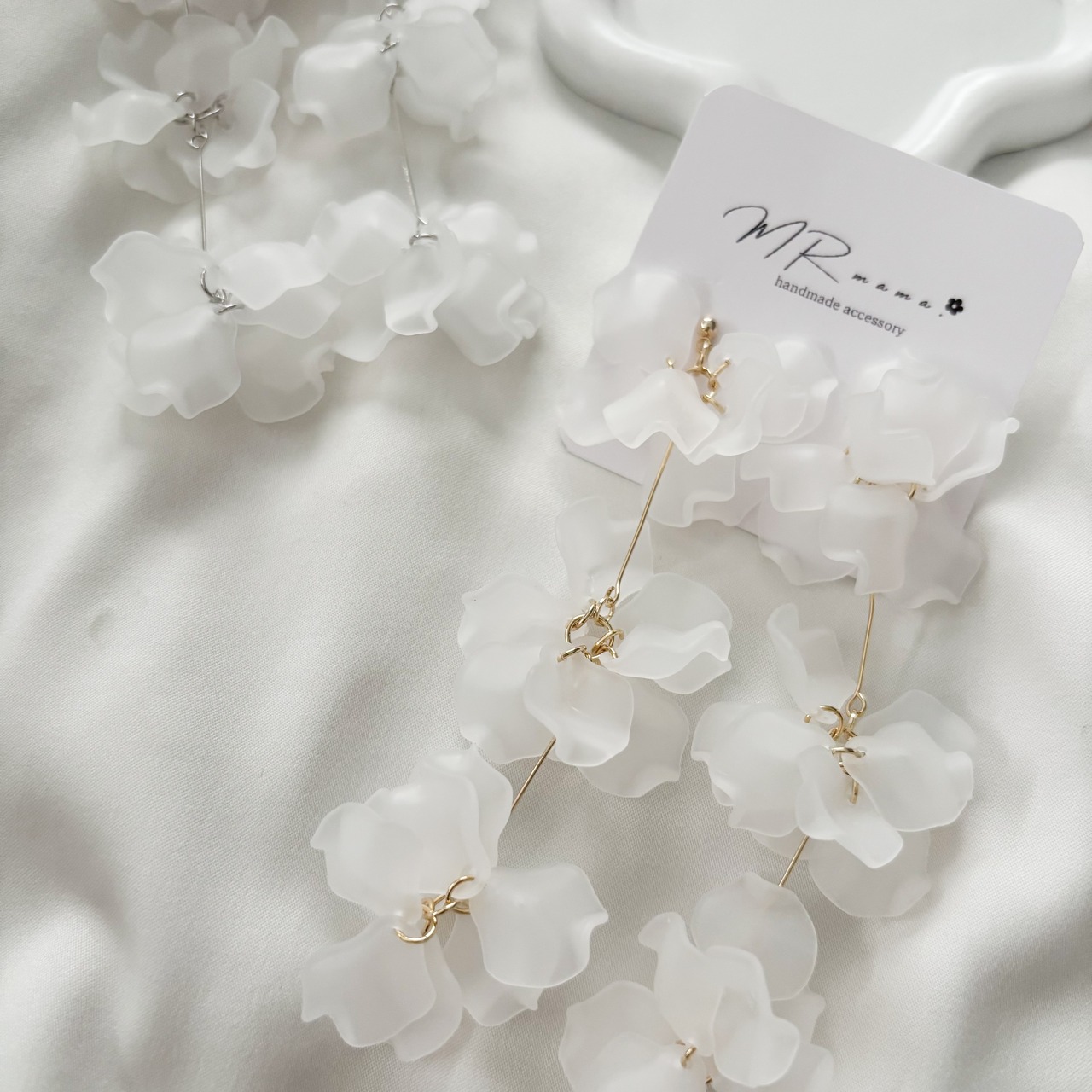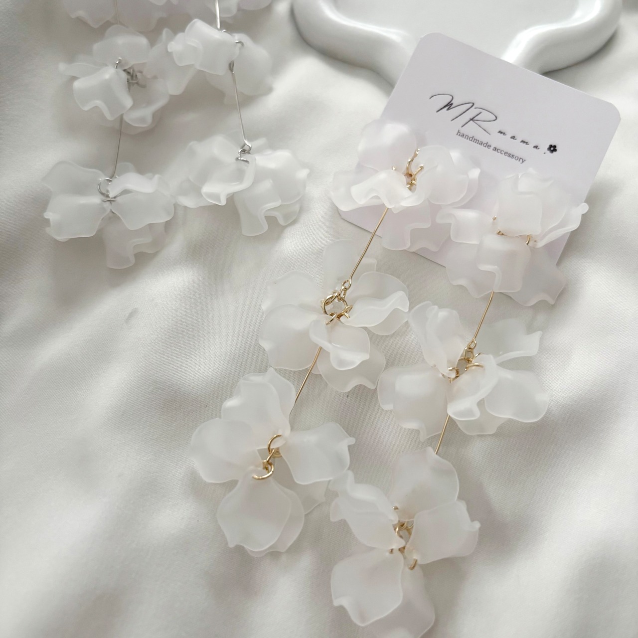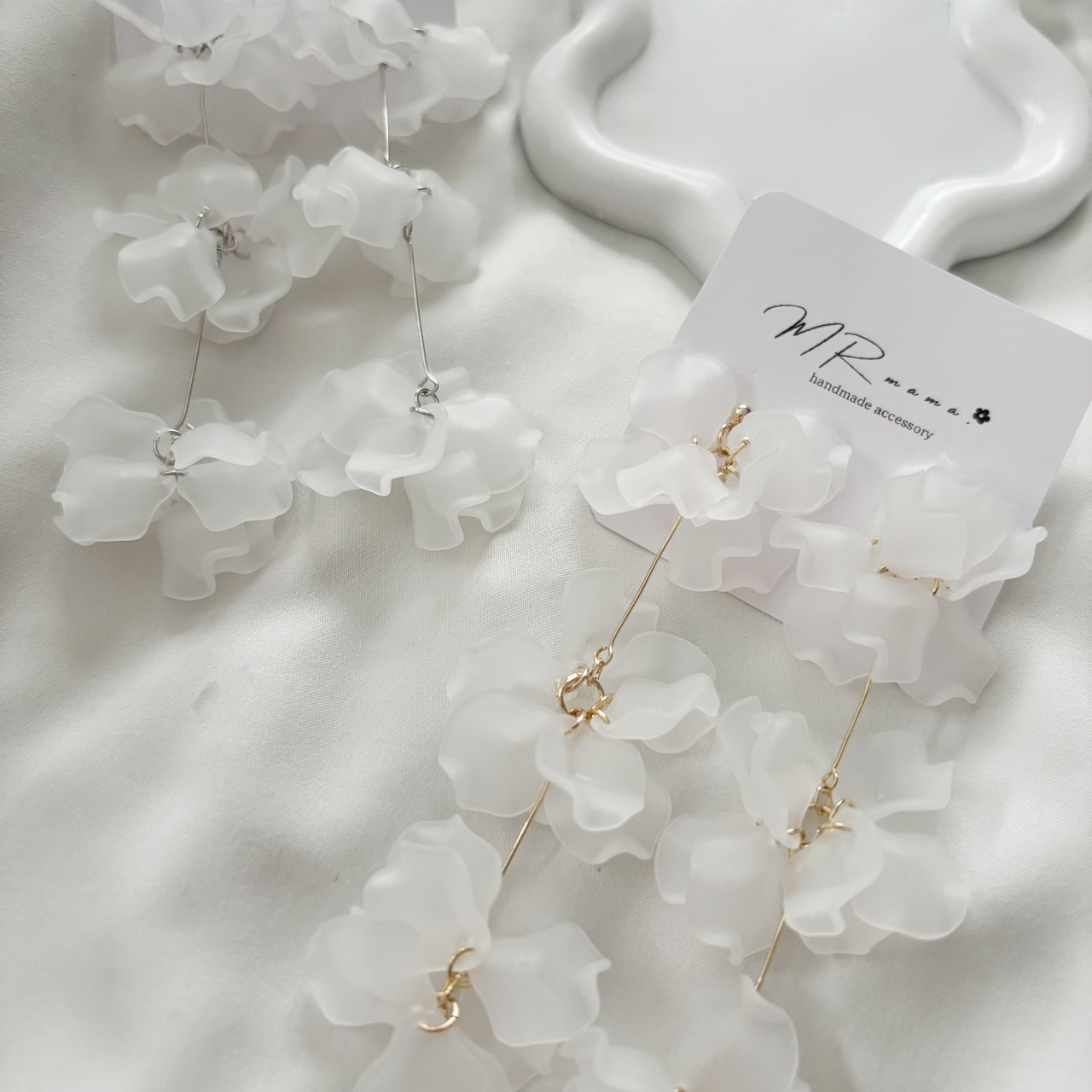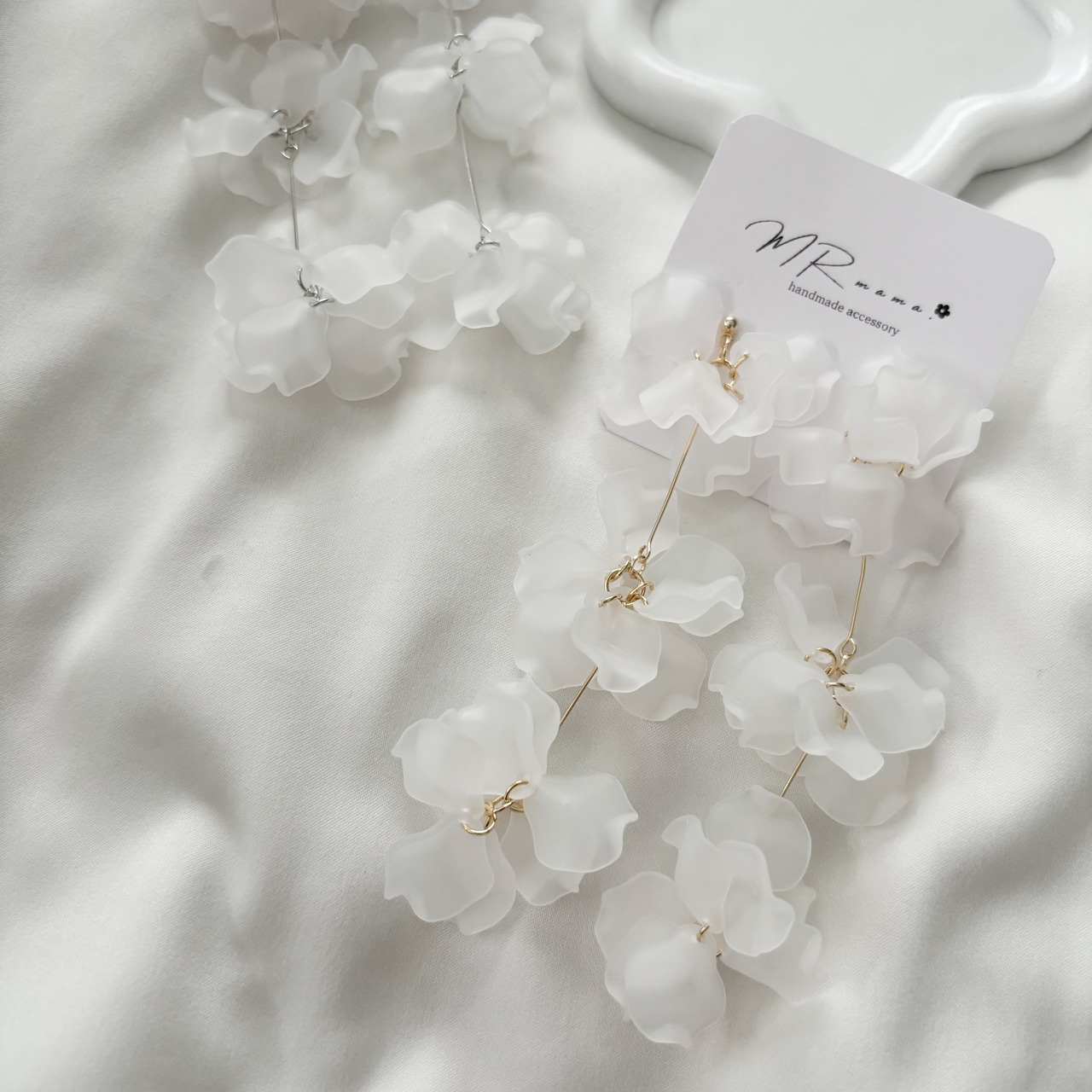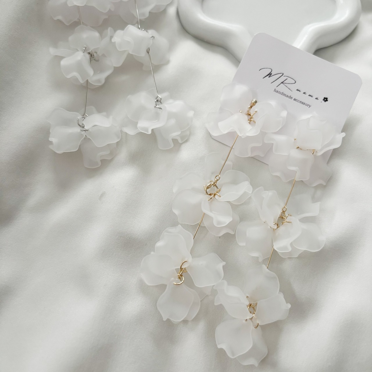 ( ピアス/イヤリング) アクリルフラワー 三連 ゴールド ブライダル ウェディング 揺れる