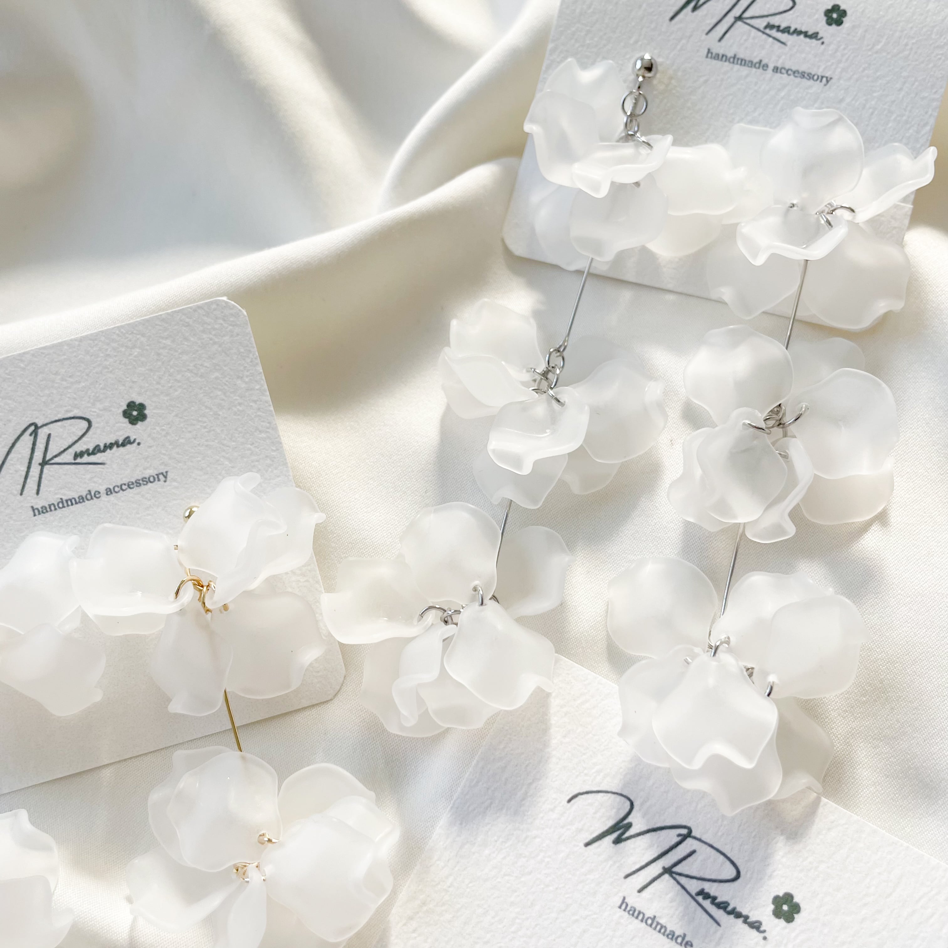 ( ピアス/イヤリング) アクリルフラワー 三連 シルバー ウェディング ブライダル 揺れる ホワイトフラワー